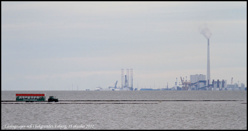 Låningsvejen vid stigande vattenstånd. I bakgrunden syns Esbjerg.