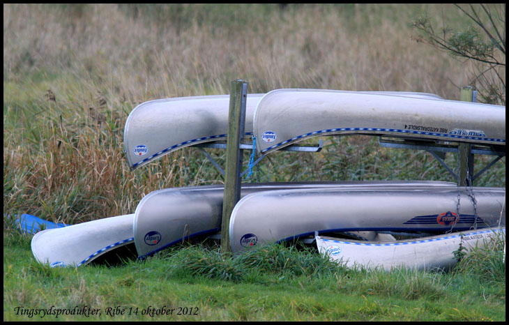 Intill ån som rinner genom Ribe låg ett antal kanoter från Tingsryd. |