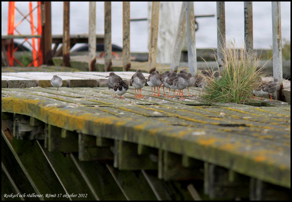 På en halvt upprutten brygga rastade ett gäng rödbenor